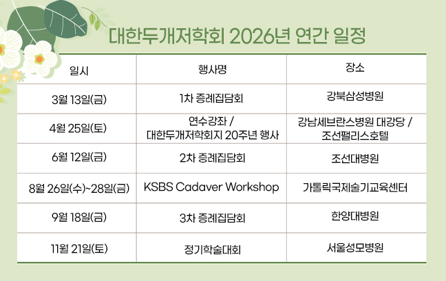 대한두개저학회 2026년 연간 일정
